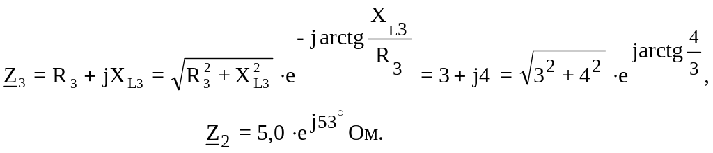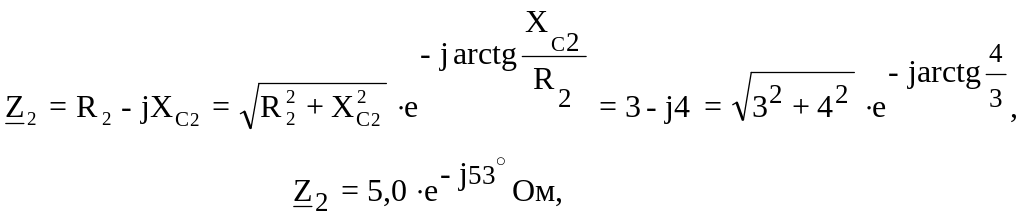Для расчета воспользуемся методом эквивалентного сопротивления в комплексном виде. Сначала рассчитаем реактивные сопротивления
