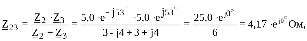 Далее сопротивление двух параллельных ветвей и эквивалентное сопротивление цепи: