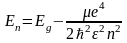 где n – главное квантовое число, – приведенная масса, определяемая как 1/ =1/me + 1/mh. Итак, связанным состояниям e- и h+ (т.е. экситону Ванье) соответствуют дискретные состояния, аналогичные водородоподобным термам (см. рис.16). Основное энергетическое состояние экситона получаем при n = 1 и эта энергия Е1 есть потенциал ионизации, необходимый для разделения экситона в основном состоянии на составляющие его частицы. Радиус экситона аналогичен Боровскому радиусу водорода