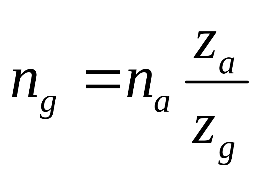 где числа оборотов ng и na обратно пропорциональны числам зубьев.