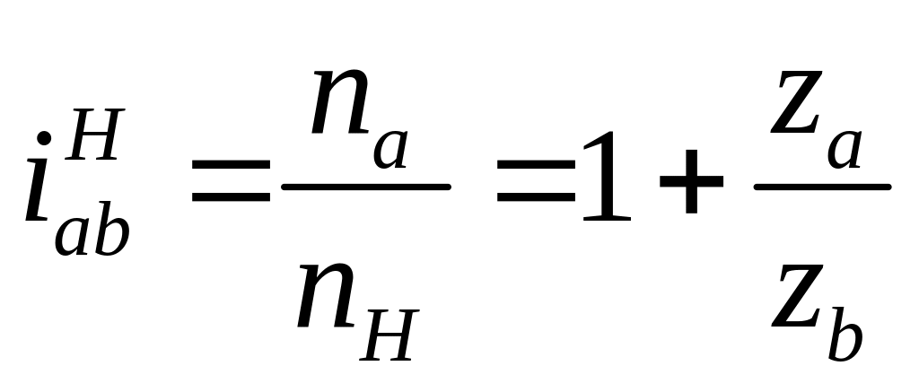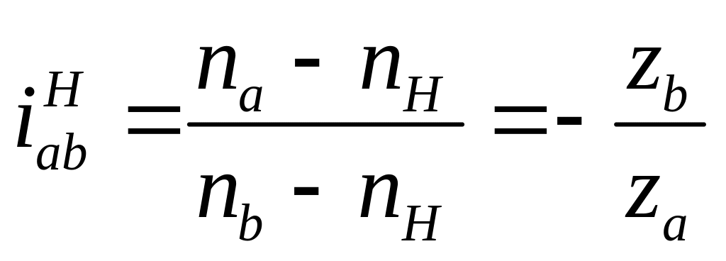 Обозначение расшифровывается таким образом: направление движения от колеса а к колесу в, Н – неподвижное звено (в данном случае – водило).