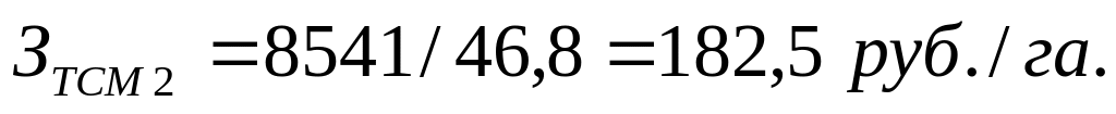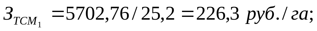 где Qтсм – расход топливо-смазочных материалов прииспользовании машинно-тракторных агрегатов на 1 га выполненных работ, кг; Цтсм – цена топливо-смазочных материалов, руб./кг; Wг – годовая наработка машинно-тракторных агрегатов, га.