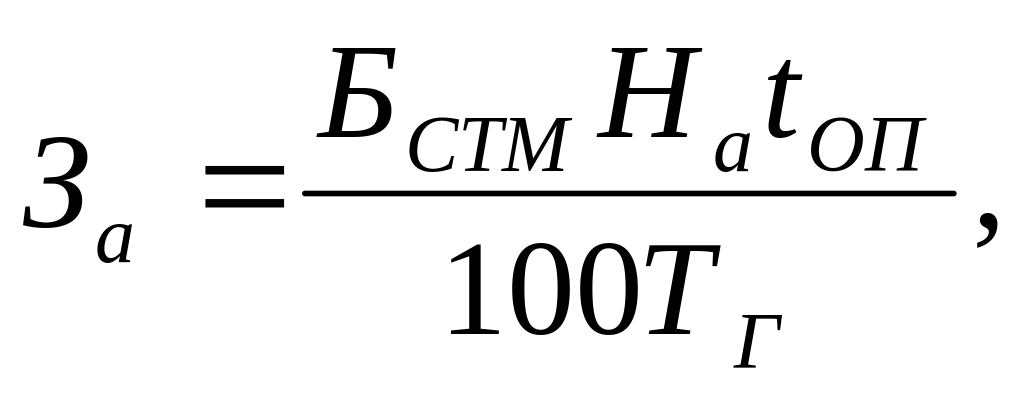 где Бстм – балансовая стоимость машины, руб., Бстм = ЦпКт; На – норма амортизации, % от балансовой стоимости машины; tоп – время занятости машины на выполнении технологической операции, ч; Тг – годовая загрузка машины в хозяйстве, ч; Цп – цена приобретаемой машины, руб.; Кт – коэффициент, учитывающий транспортные расходы на доставку машины в хозяйство (Кт = 1,2∙∙∙1,3).