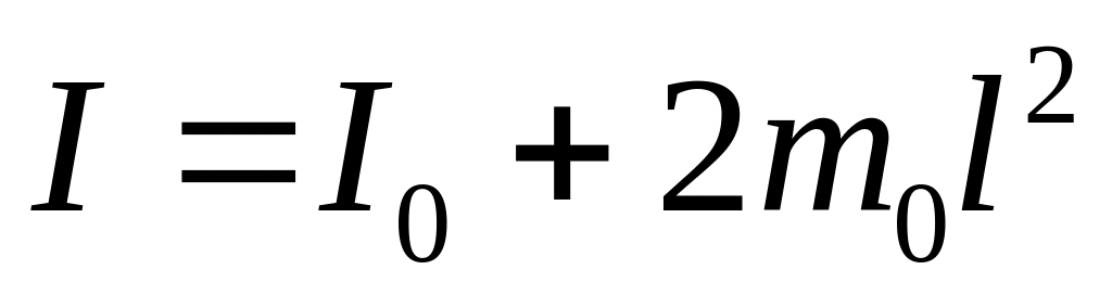 где m1 – масса цилиндра, m2 – масса спицы, m0 - масса одной гайки, I0 – момент инерции цилиндра со спицей без учета гаек, l – расстояние от оси цилиндра до центра гайки (предполагается, что гайки являются материальными точками и смещаются всегда симметрично относительно оси цилиндра).