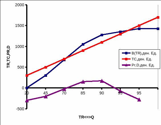 Используя результаты, полученные при решении предыдущей задачи и при условии, что PQ=15 ден.ед/ед.продукции.