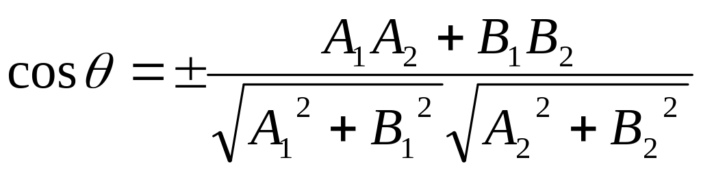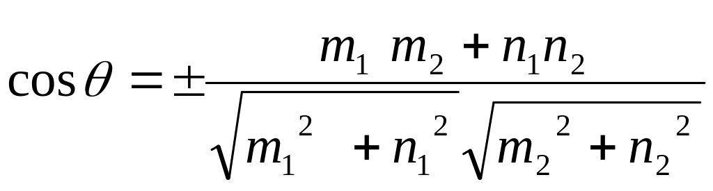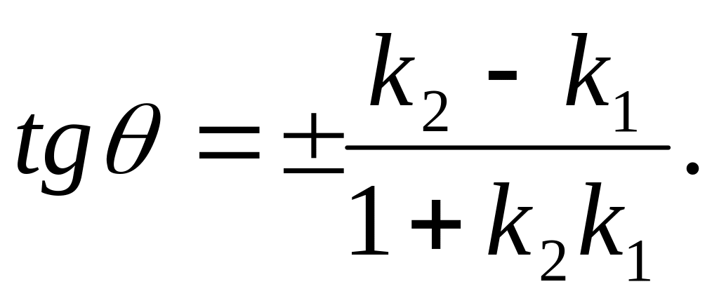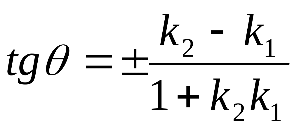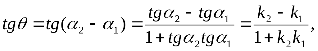 (4.16) — формула для обчислення кута між прямими. Знаки «плюс» або «мінус» дають змогу визначити кожен із суміжних кутів, утворених в результаті перетину прямих.