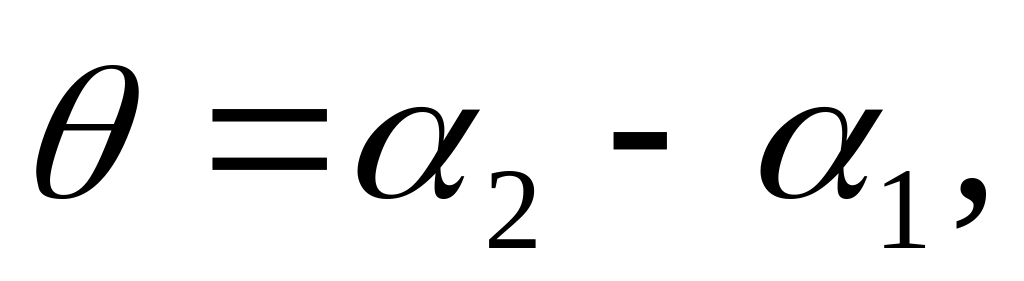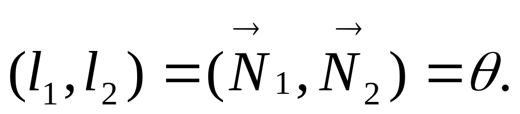 Означення. Кутом між прямим l1 і l2 називається такий кут , поворот на який від першої прямої до другої відносно точки їх перетину до суміщення цих прямих відбувається на найменший кут проти руху годинникової стрілки.