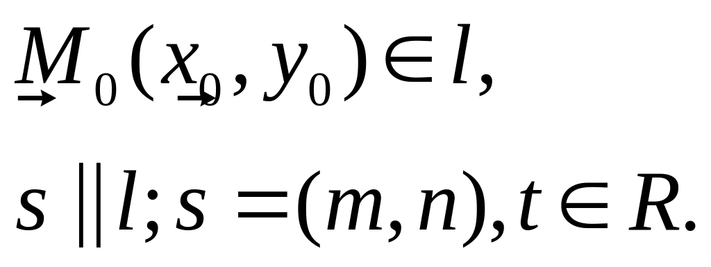 - •Рiвняння прямої, що проходить через задану точку паралельно заданому вектору