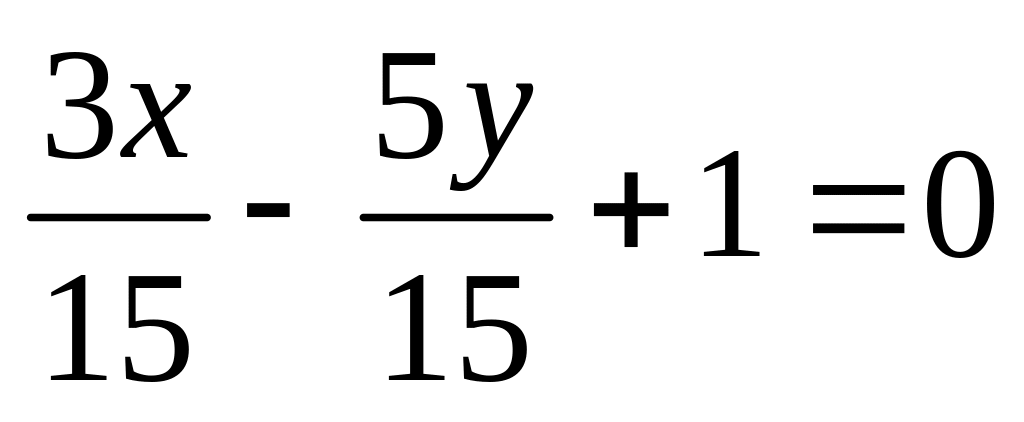 1. Пряму задано рівнянням 3х – 5у + 15 = 0. Перевірити, які з точок А (– 2, 3), В (0, 3), С (5, 6), належать заданій прямій, знайти її рівняння з кутовим коефіцієнтом і у відрізках на осях.
