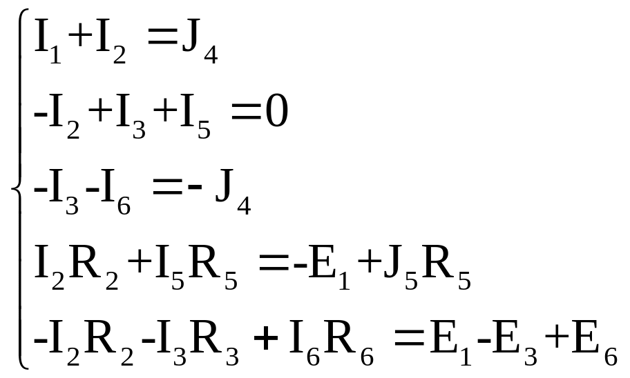 Ветвь с идеальным источником тока J4 контура не создает. Поэтому имеем систему из 5 уравнений.
