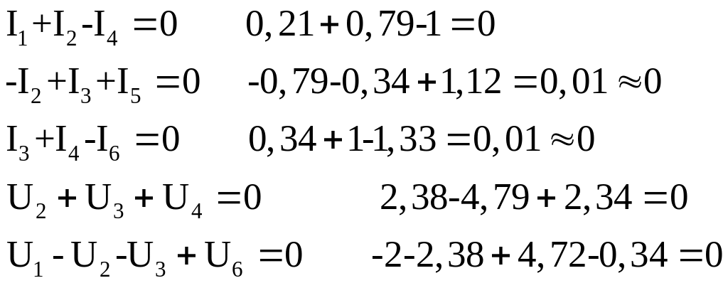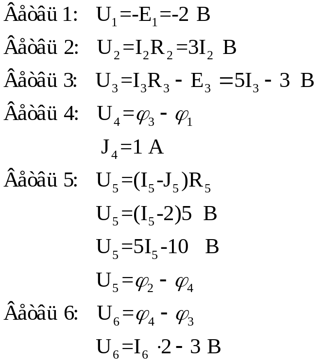 Записываем уравнения по второму закону Кирхгофа, полученные в пункте 6 с использованием значений напряжений полученных для каждой ветви при помощи компонентных уравнений: