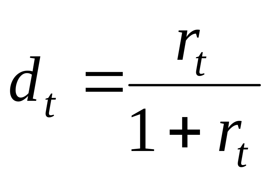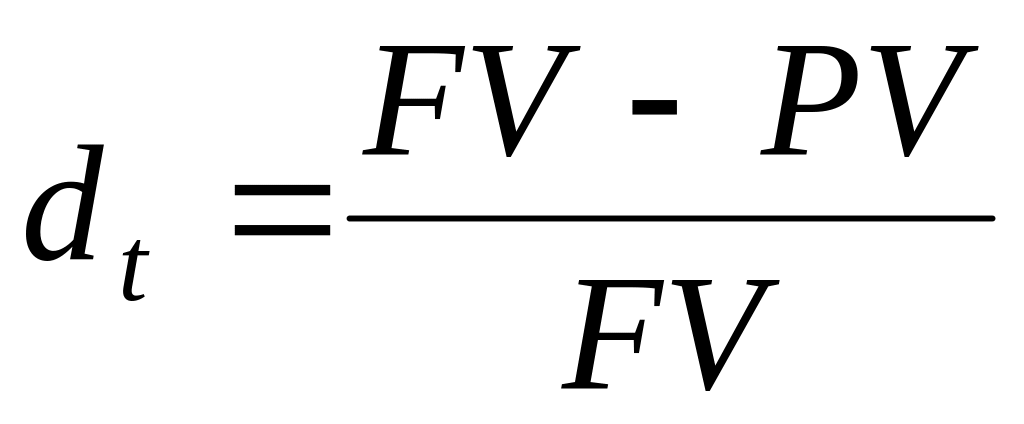 Учетная ставка (дисконт) dt рассчитывается отношением наращения (FV – PV) к ожидаемой в будущем, или наращенной суммы FV.