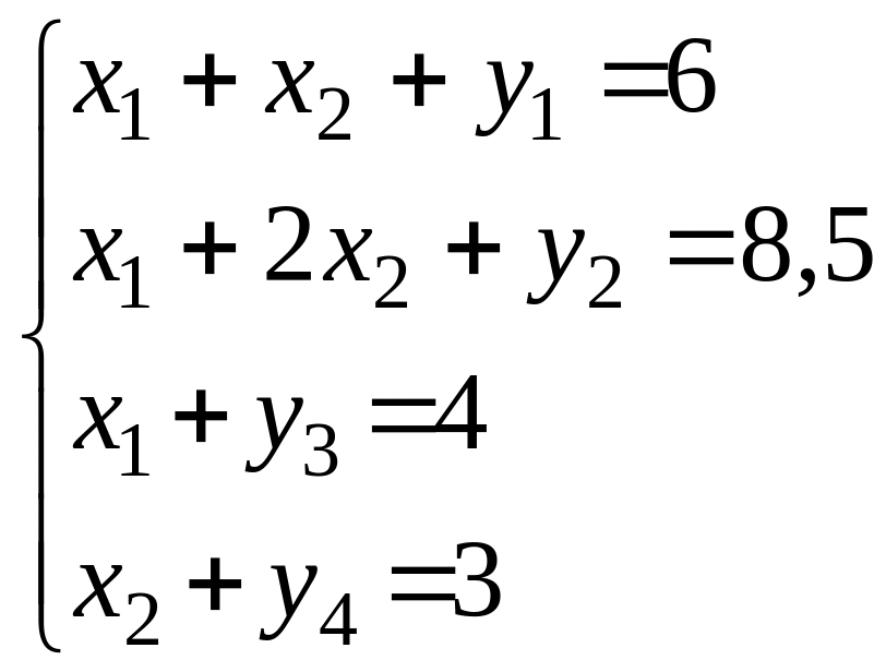 Примем вновь введенные переменные у1, у2, у3, у4 в качестве базисных, которые выразим через свободные переменные х1 и х2