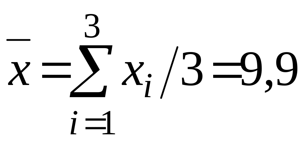 Пример: Известны три значения нормально распределенной случайной величины Х: х1 = 10,0; х2 = 9,5;. х3 = 10,2. Требуется определить генеральное среднее с р = 0,95.