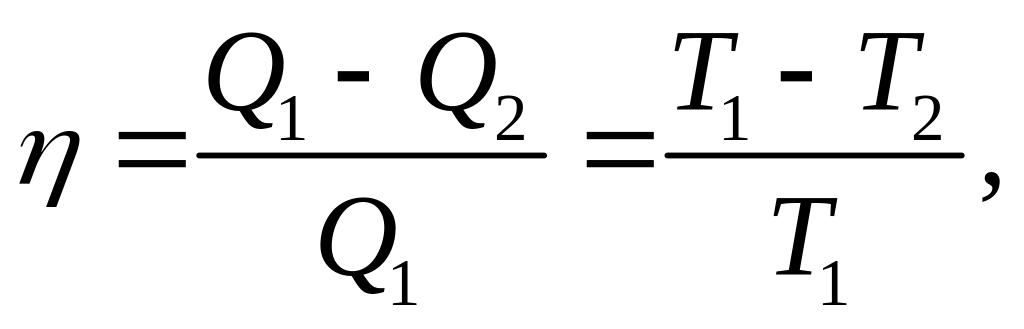 где Q1 - теплота, полученная рабочим телом от теплоотдатчика; Q2 - теплота, переданная рабочим телом теплоприемнику.