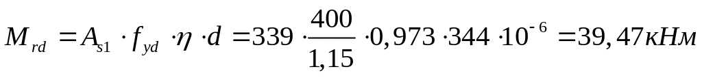 В месте теоретического обрыва арматура 312 S400, АS = 339 мм2;