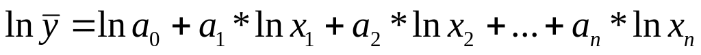 Для того чтобы найти коэффициенты регрессии а0, а1, а2, ... , аn, необходимо исходное кравнение прологарифмировать: