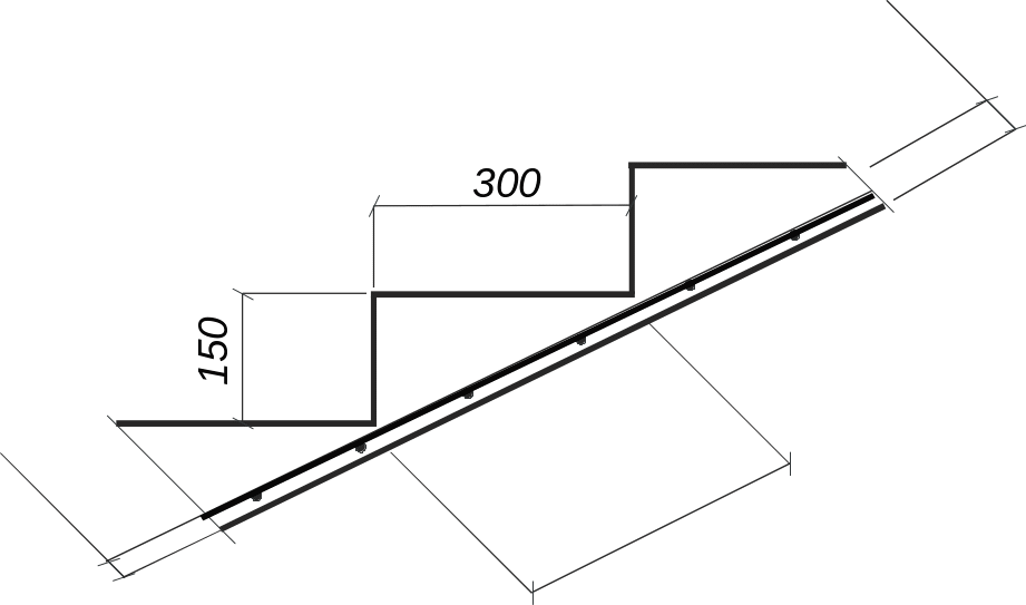 Ступени при высоте 150 мм и ширине 300 мм обладают большой жёсткостью и прочностью. Поэтому назначаем арматуру по минимальному проценту армирования m = 0,05%