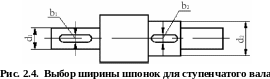 Поскольку технологически невыгодно выполнять на одном валу шпонки различной ширины (смена инструмента увеличивает время обработки и требует наличия расширенного сортамента обрабатывающего инструмента на рабочем месте), принято выполнять шпонки одинаковой ширины для всех ступеней вала, исходя из ступени наименьшего диаметра как наиболее нагруженной.