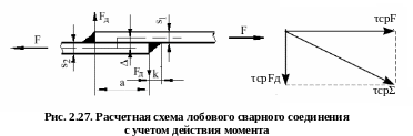 2.2.3. Расчет на прочность центрально нагруженных нахлесточных (валиковых) сварных соединений