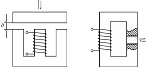 Индуктивные преобразователи с переменным зазором имеют высокую чувствительность и реагируют на изменение зазора порядка 0,1…0,5 мкм. Ток в обмотке катушки определяется выражением