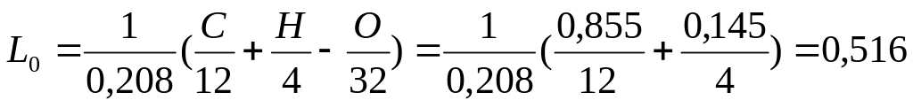 Теоретически необходимое количество воздуха для сгорания 1 кг топлива