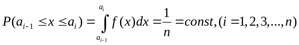 Номер і-го інтервалу, в якому міститься точка М (шукана випадкова величина Х), можна визначити, скориставшись описаною раніше процедурою випробувань за “жеребкуванням” для рівноімовірних подій, що утворюють повну групу.