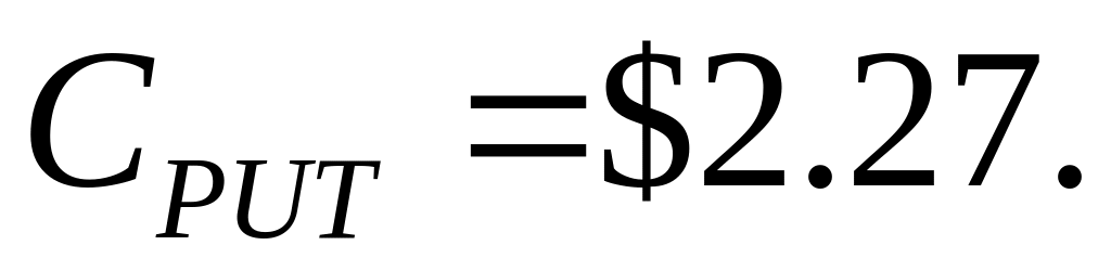 Задача 6.2 Вычислить стоимость опциона PUT (европейского), если стоимость опциона CALL равна $5, цена акции, на который выписывается опцион в начальный момент времени, равна $30, цена исполнения $25, безрисковая ставка до момента исполнения 10%.