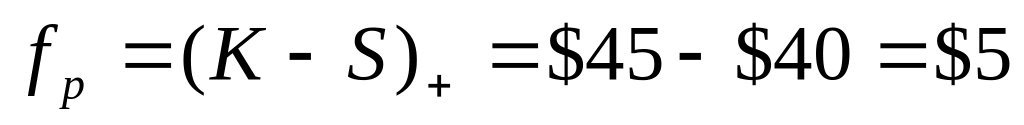 Задача 6.4 Инвестор приобретает опцион PUT на три месяца, курс акции в момент заключения контракта равен $40, цена исполнения $45, безрисковая процентная ставка 10%. Считается, что за один месяц курс акции может подняться до $44.25 или опуститься до $35.75. Найти цену опциона в рамках многошаговой модели.
