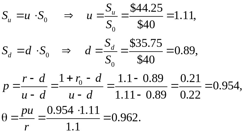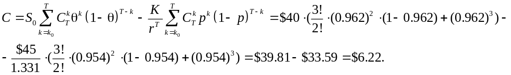 Теперь, используя формулу (1.12), окончательно можем получить цену опциона: