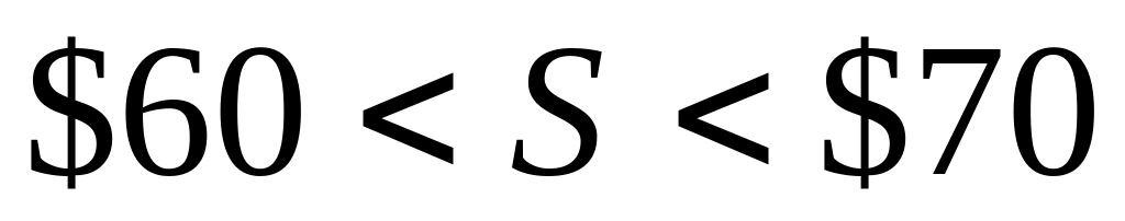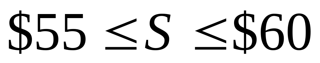 Задача 6.5 Инвестор покупает опцион CALL с ценой исполнения $60 стоит $5, и опцион PUT с ценой исполнения $55 также стоит $5. Построить график дохода по комбинации PUT+CALL (стрэнгл) в зависимости от цены базисного актива для инвестора и продавца стрэнегла.