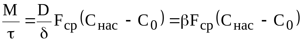 Движущей силой процессов экстракции жидкостью из твердого материала является разность между концентрациями растворяемых веществ у поверхности твердого тела и в ядре смывающего потока. Вблизи поверхности твердого тела концентрация устанавливается быстро и может быть принята равной Снас. Движущая сила может быть выражена разностью Снас-С0.
