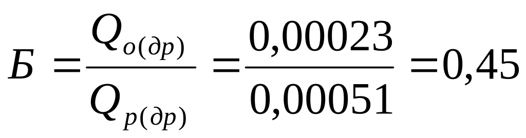 е) знаходимо відношення фактичної витрати води до пропускної здатності трубопроводу;