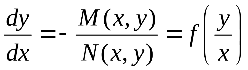 К уравнениям с разделяющимися переменными приводятся и так называемые однородные дифференциальные уравнения первого порядка, имеющие вид: