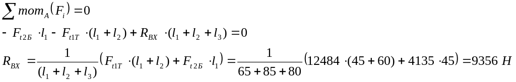 При расчете примем, что насажанные на вал детали передают силы и моменты на валу на середине своей ширины.