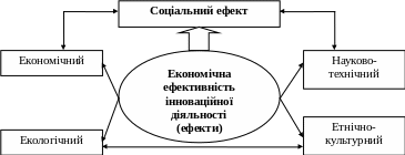 Для оцінки економічної ефективності інноваційної діяльності у вітчизняній практиці використовується система показників, що відображають співвідношення витрат і отриманих результатів, тобто ефекти, які може бути одержано від реалізації інноваційної діяльності. Взаємозв’язок ефектів інноваційної діяльності показано на рис. 12.10.