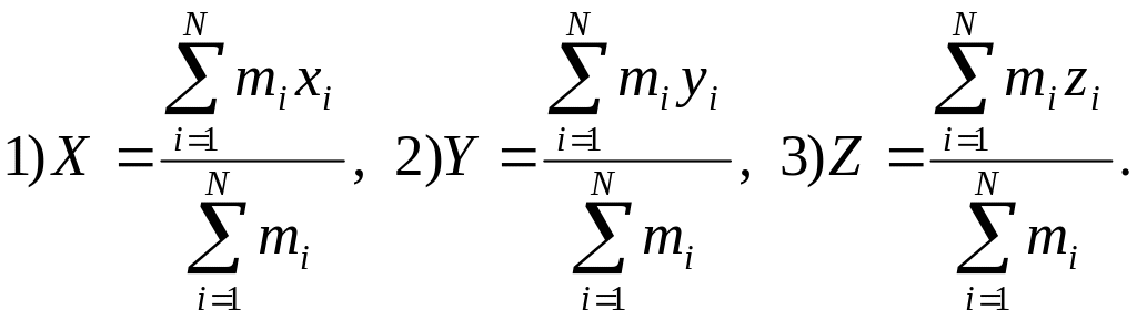 Центром масс системы материальных точек является точка пространства, радиус-вектор и координаты которой определяются следующим образом:
