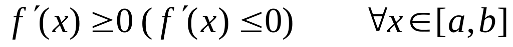 Во всех четырех случаях функцию называют монотонной на [a,b], причем в случаях 1) и 3) говорят, что функция строго монотонна, а в случаях 2) и 4) – просто монотонна.