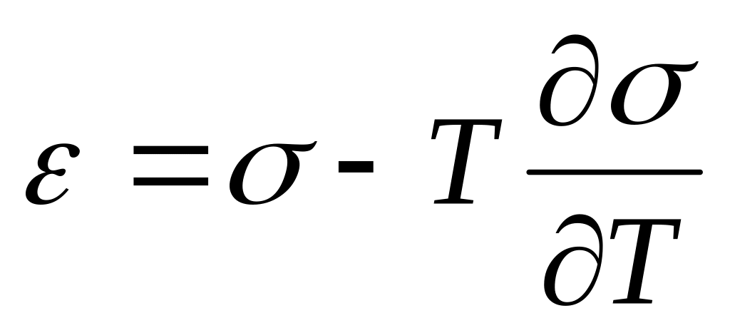 показывает, что полная поверхностная энергия единицы поверхности больше ее свободной энергии (так как < 0) и слагается из двух величин и T = q. Величина равна максимальной работе процесса, в то время как q — (скрытая теплота образования поверхности) показывает, какое количество тепла поглощает система при изотермическом образовании 1см2 поверхности для поддержания постоянной температуры.