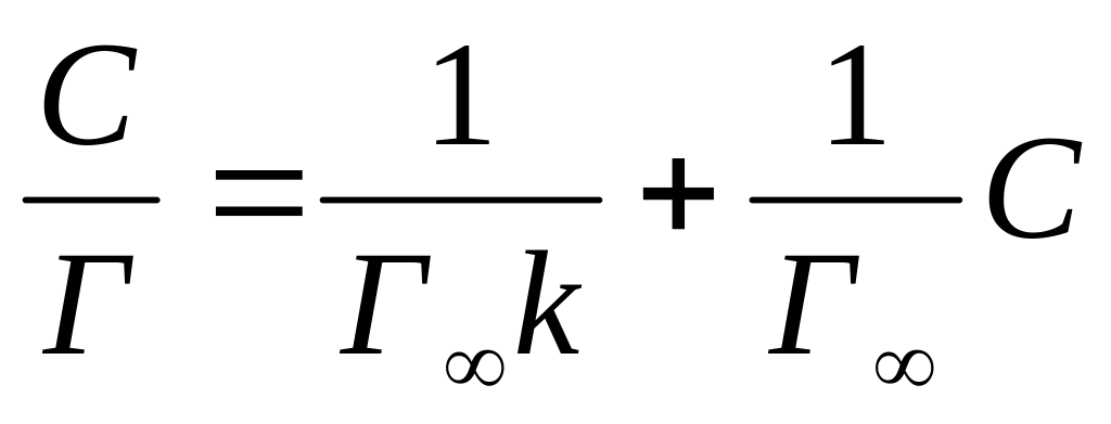 В координатах (С/Г, С) уравнение отвечает прямой, не проходящей через начало координат. Величину, Г определяют по углу наклона прямой, а именно: