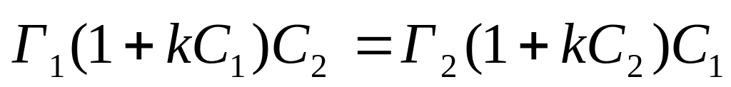 Решая подобные системы для различных пар (например, для пяти растворов различной концентрации можно составить 10 различных пар), находят значения k, берут среднее и, подставляя его во все исходные уравнения, получают значения Г, из которых вычисляют среднее арифметическое.