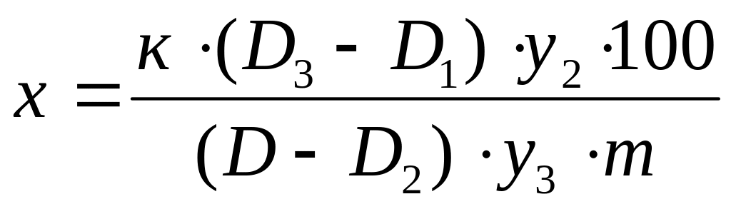 Массовую долю аскорбиновой кислоты в мг/100г продукта вычислить по формулам:
