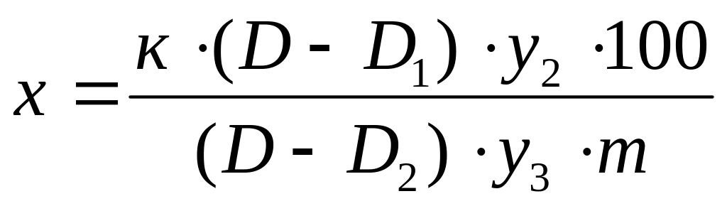 D – средняя величина поглощения органического экстракта в колбах 3, 4 (контроль на реактивы);