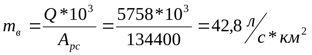 Средний слой стока воды за многолетний период для р. Грихальва составляет y=1351 мм/г, учитывая площадь ее водосбора F=134400 км2, можно рассчитать характеристики водоносности реки (сток воды, расход воды, модуль стока):