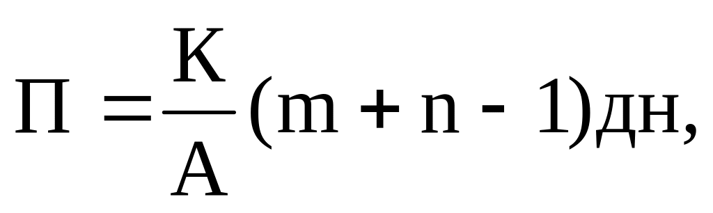 де К – модуль циклічності в змінах; А – кількість робочих змін у добі; m – кількість ярусо-захваток; n – кількість частних потоків.