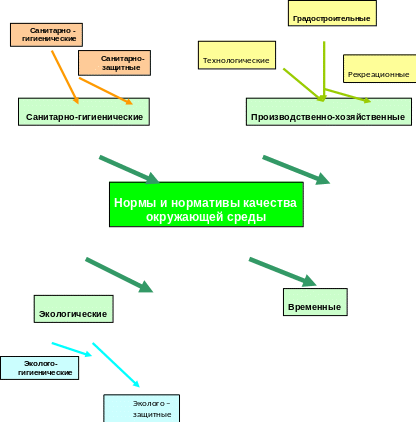 Санитарные и экологические нормативы в свою очередь делятся на гигиенические и защитные.