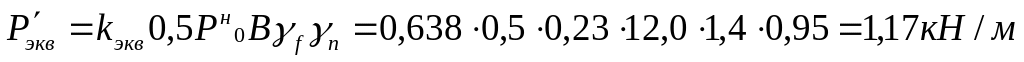 W = (Pэкв+ P´экв) (Н1-Н)=(1,87+1,17)(16,8-13,2)=10,944кН.