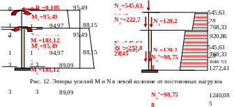 Усилия в крайней колонне от постоянных нагрузок.