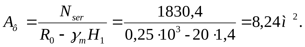 Площадь подошвы фундамента