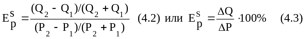 Измерение эластичности предложения производится с помощью коэффициента эластичности. Он рассчитывается как отношение процентного изменения количества предлагаемой продукции к процентному изменению цены. Формула для подсчета коэффициента эластичности предложения по цене (Es) имеет вид: